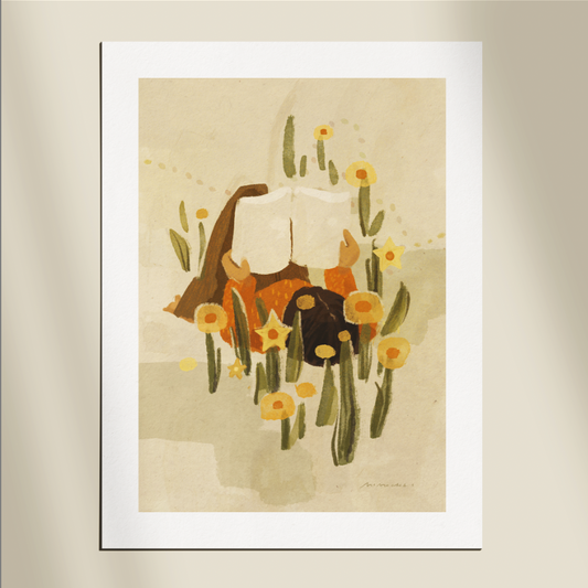 I’m in love with the mini print with stand, it gives me good vibes and a sensation of peace and warmth, and stands beautifully near my freshly picked flowers right now. I feel so grateful for your art, for me it’s inspirational, thank you and have a good day!
